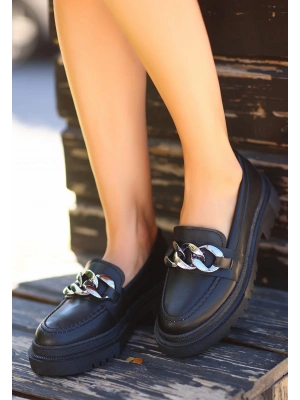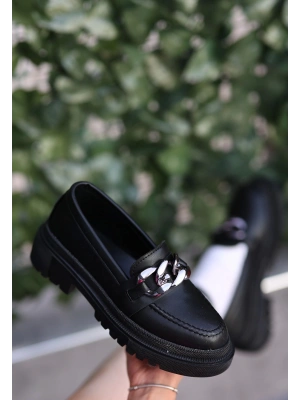Popi Mint Yeşili Cilt Zincirli Babet Ayakkabı