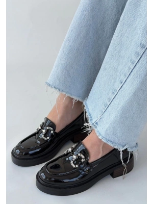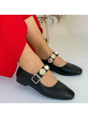 Hante Siyah Keten Taşlı Babet Ayakkabı