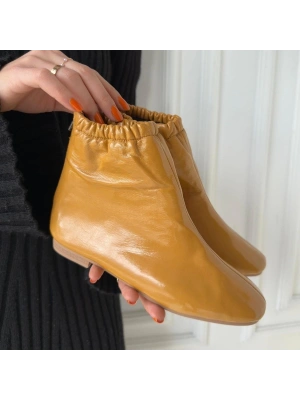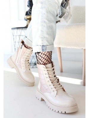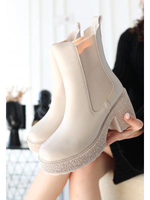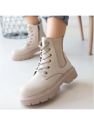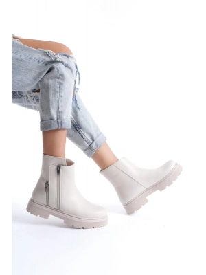 Menta Bej Cilt Fermuar Aksesuarlı Bot