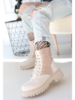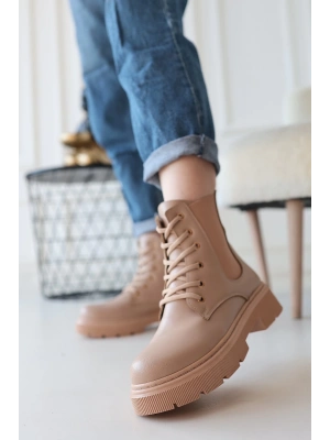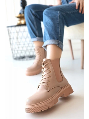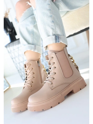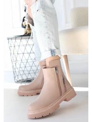Menta Nude Cilt Fermuar Aksesuarlı Bot