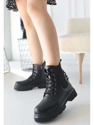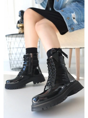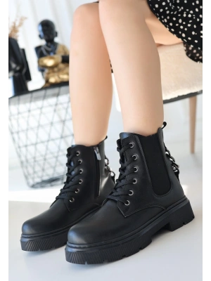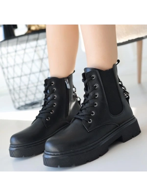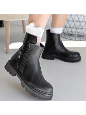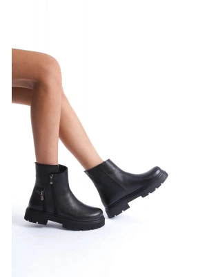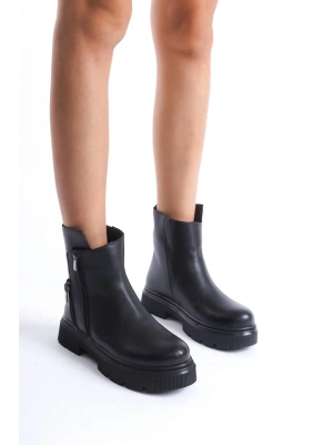 Menta Siyah Cilt Fermuar Aksesuarlı Bot