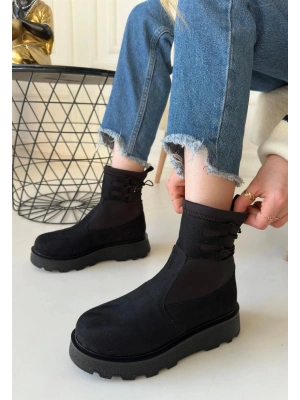Jety Siyah Süet Bilekten Bağcıklı Bot
