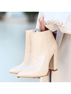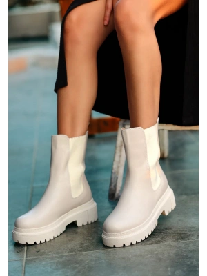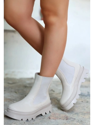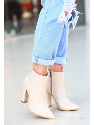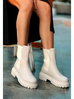 Biya Krem Cilt Topuklu Bot