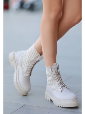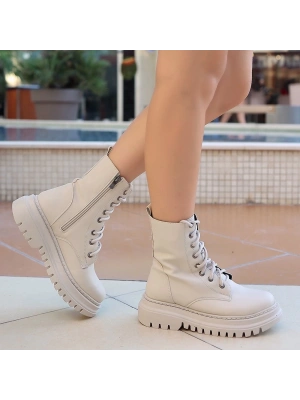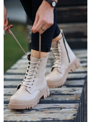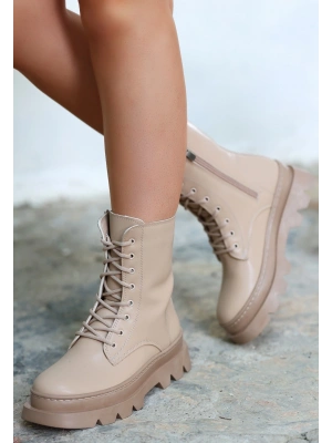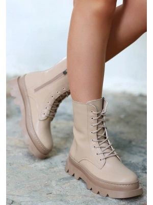Toir Bej Cilt Bağcıklı Postal