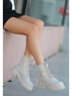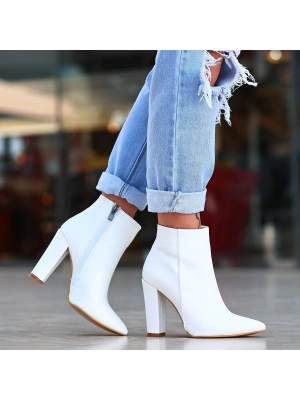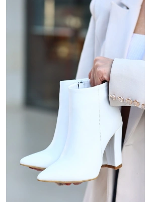 Loora Beyaz Cilt Topuklu Bot