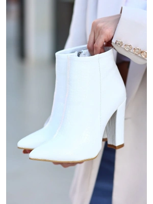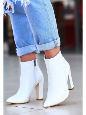Loora Beyaz Rugan Desenli Topuklu Bot