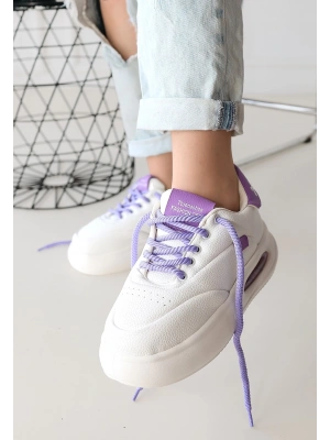 Chris Beyaz Cilt Lila Detaylı Bağcıklı Spor Ayakkabı