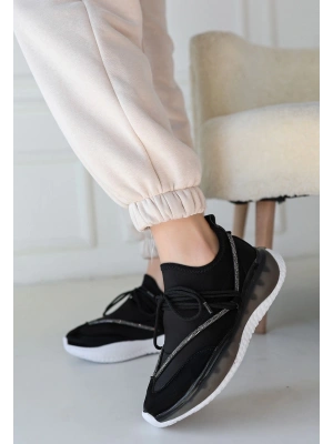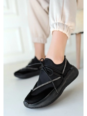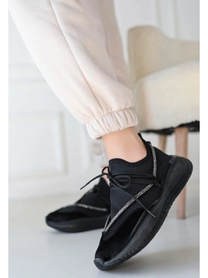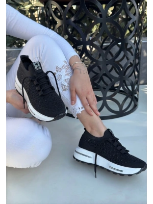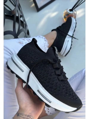 Cilla Siyah Triko Boncuk İşlemeli Spor Ayakkabı