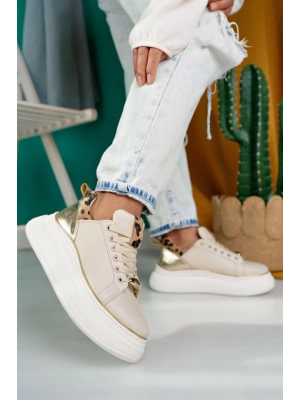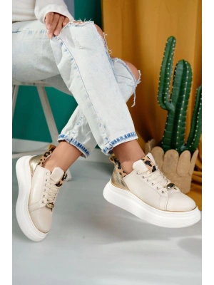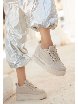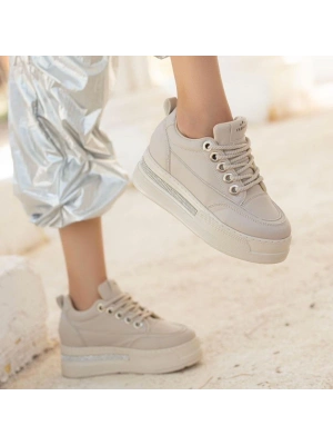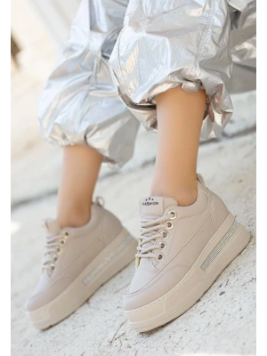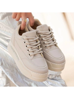 Lulu Bej Cilt Bağcıklı Spor Ayakkabı