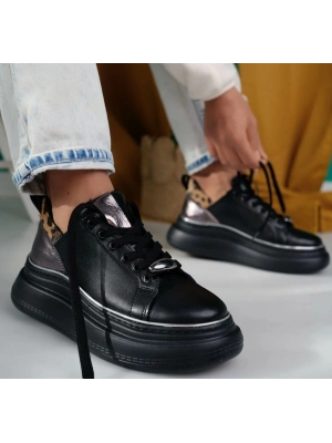 Jule Siyah Cilt Bağcıklı Spor Ayakkabı
