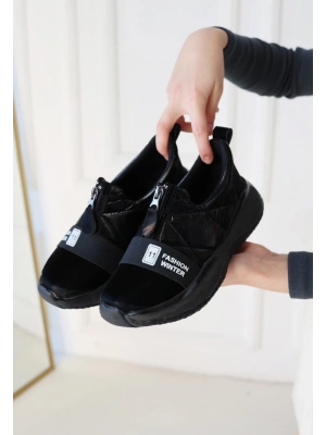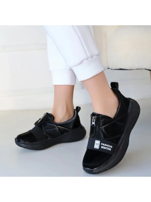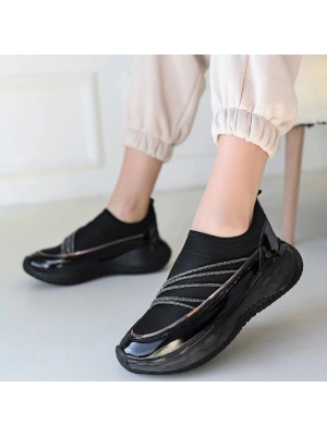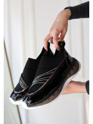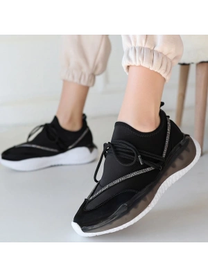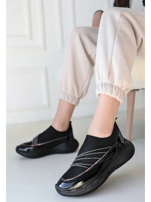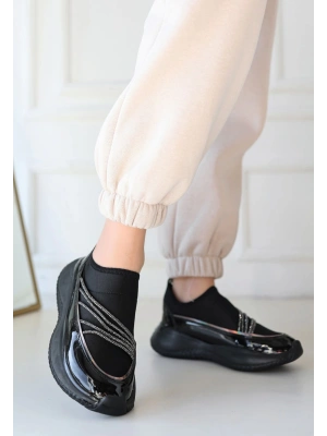 Keita Siyah Rugan Streç Detaylı Siyah Tabanlı Spor Ayakkabı