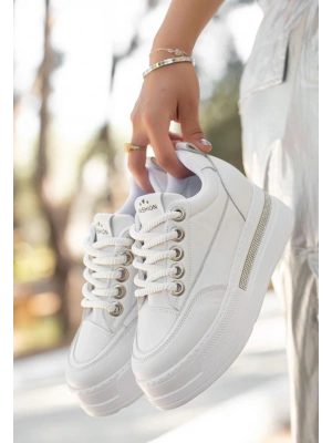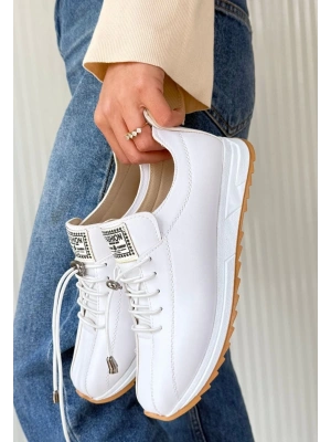 Monya Beyaz Cilt Bağcıklı Spor Ayakkabı