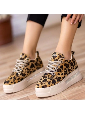 Lulu Leopar Süet Bağcıklı Spor Ayakkabı