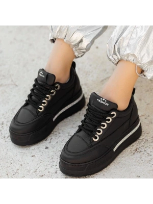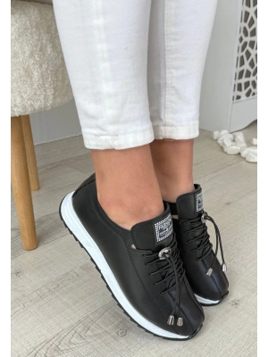 Monya Siyah Cilt Bağcıklı Spor Ayakkabı