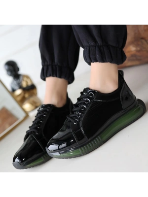 Piona Siyah Rugan Yeşil Tabanlı Spor Ayakkabı
