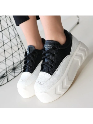 Yebta Siyah Cilt Beyaz İşlemeli Spor Ayakkabı