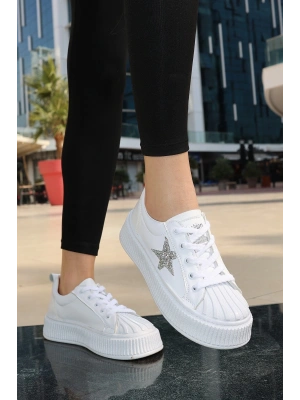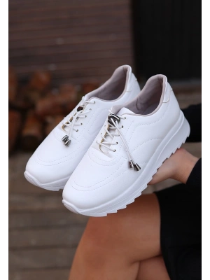 Piata Beyaz Cilt Bağcıklı Spor Ayakkabı