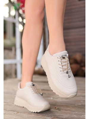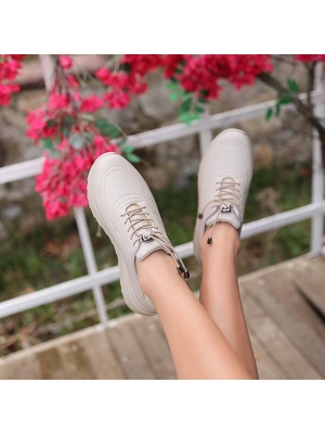 Romy Bej Cilt Bağcıklı Spor Ayakkabı