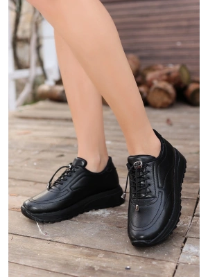 Emwa Siyah Cilt Bağcıklı Spor Ayakkabı