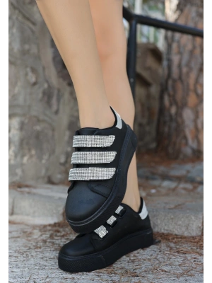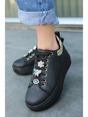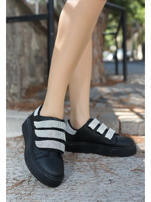 Tenya Siyah Cilt Taşlı Bağcıklı Spor Ayakkabı