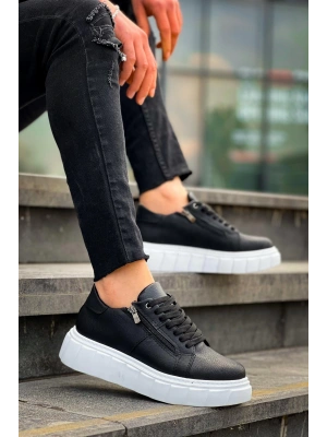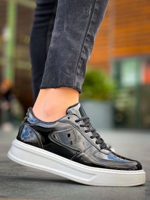 KB-X155 Kuback Siyah Cilt Detaylı Siyah Yüksek Taban Günlük Spor Ayakkabı