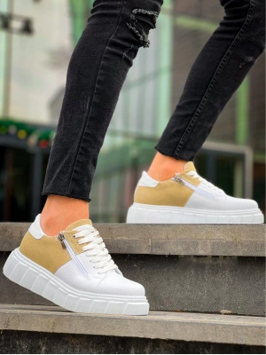KB-CX-3 Kuback Kısa Sarı Keten Beyaz Yüksek Taban Spor Ayakkabı