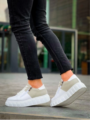 KB-X155 Kuback Beyaz Cilt Bej Süet Detaylı Beyaz Yüksek Taban Günlük Spor Ayakkabı