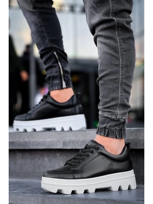 KB-056 Kuback Siyah Cilt Beyaz Yüksek Taban Günlük Spor Ayakkabı