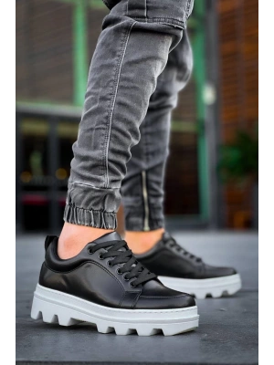 KB-BX1 Kuback Siyah Cilt Yüksek Beyaz Taban Günlük Erkek Ayakkabı