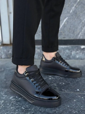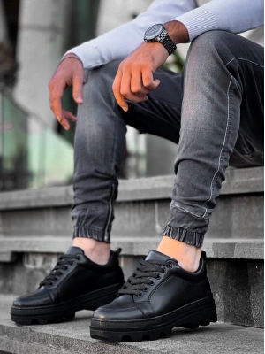 KB-056 Kuback Siyah Cilt Siyah Yüksek Taban Günlük Spor Ayakkabı