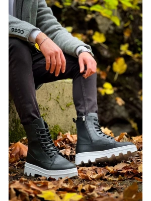 KB-0993 Kuback Siyah Cilt Beyaz Yüksek Taban Postal Bot