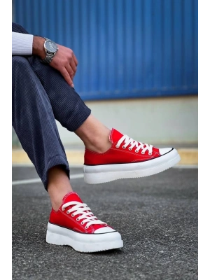 KB-CX-3 Kuback Kısa Kırmızı Keten Beyaz Yüksek Taban Spor Ayakkabı