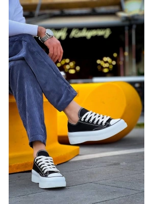 KB-CX-3 Kuback Kısa Siyah Keten Siyah Yüksek Taban Spor Ayakkabı