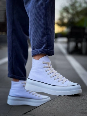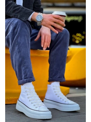 KB-056 Kuback Beyaz Siyah Detaylı Beyaz Yüksek Taban Günlük Spor Ayakkabı