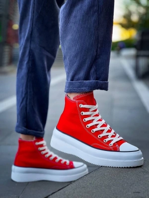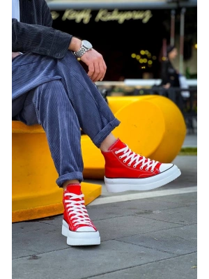 KB-CX-3 Kuback Uzun Kırmızı Keten Beyaz Yüksek Taban Spor Ayakkabı
