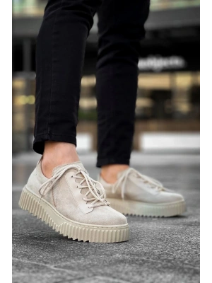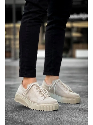 KB-056 Kuback Bej Süet Beyaz Yüksek Taban Günlük Spor Ayakkabı