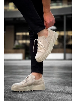 KB-X502 Kuback Bej Süet Yüksek Bej Taban Bağcık Detaylı Lastikli Günlük Erkek Ayakkabı