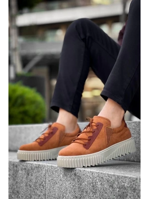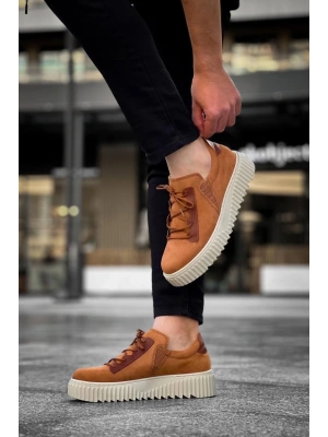 KB-X502 Kuback Taba Süet Yüksek Bej Taban Bağcık Detaylı Lastikli Günlük Erkek Ayakkabı