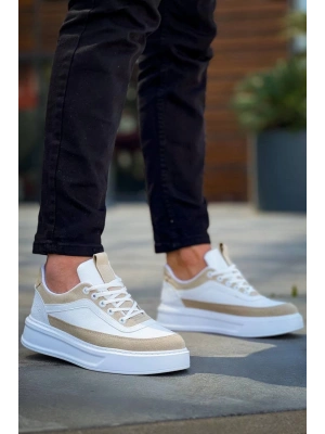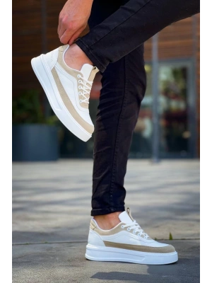 KB-006 Kuback Beyaz Cilt Bej Süet Yüksek Taban Bağcıklı Günlük Erkek Ayakkabı