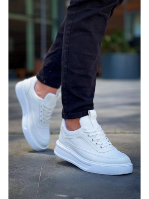 KB-707 Kuback Beyaz Cilt Yüksek Taban Bağcıklı Günlük Erkek Ayakkabı
