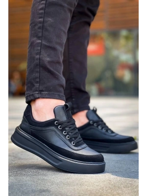 KB-X4 Kuback Siyah Cilt Siyah Yüksek Taban Bağcıklı Günlük Erkek Ayakkabı