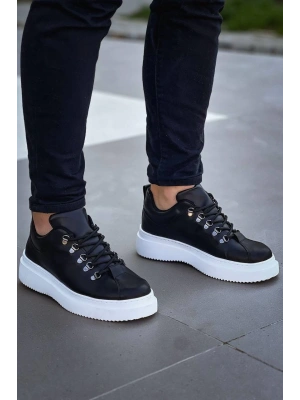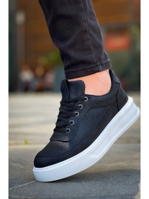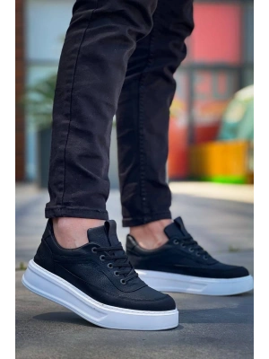 KB-X4 Kuback Siyah Cilt Yüksek Taban Bağcıklı Günlük Erkek Ayakkabı