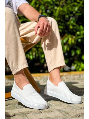 KB-114 Kuback Beyaz Triko Yüksek Taban Bağcıksız Günlük Erkek Ayakkabı