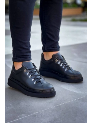 KB-122 Kuback Siyah Cilt Siyah Yüksek Taban Bağcıklı Günlük Erkek Ayakkabı