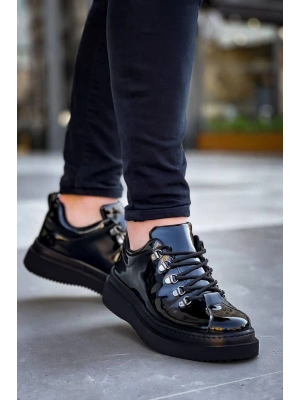 KB-X4 Kuback Siyah Rugan Yüksek Taban Bağcıklı Günlük Erkek Ayakkabı
