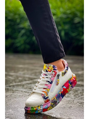 KB-02 Kuback Bağcıklı Crocodile Beyaz Kırmızı Günlük Erkek Ayakkabı