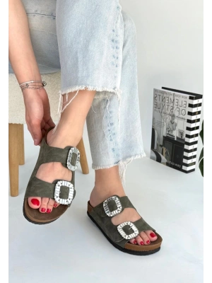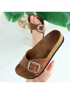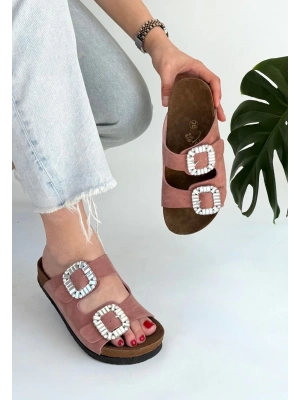 Edaj Kahverengi Nubuk Boncuk İşlemeli Terlik