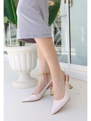 Hillar Beyaz Cilt Stiletto Ayakkabı